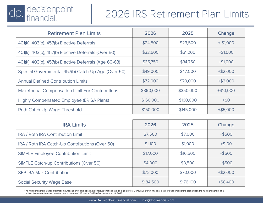 This morning the IRS came out with the new 2026 contribution limits for retirement plans and IRA’s. Below is a full summary of the new limits, but here are the 457(b) highlights: